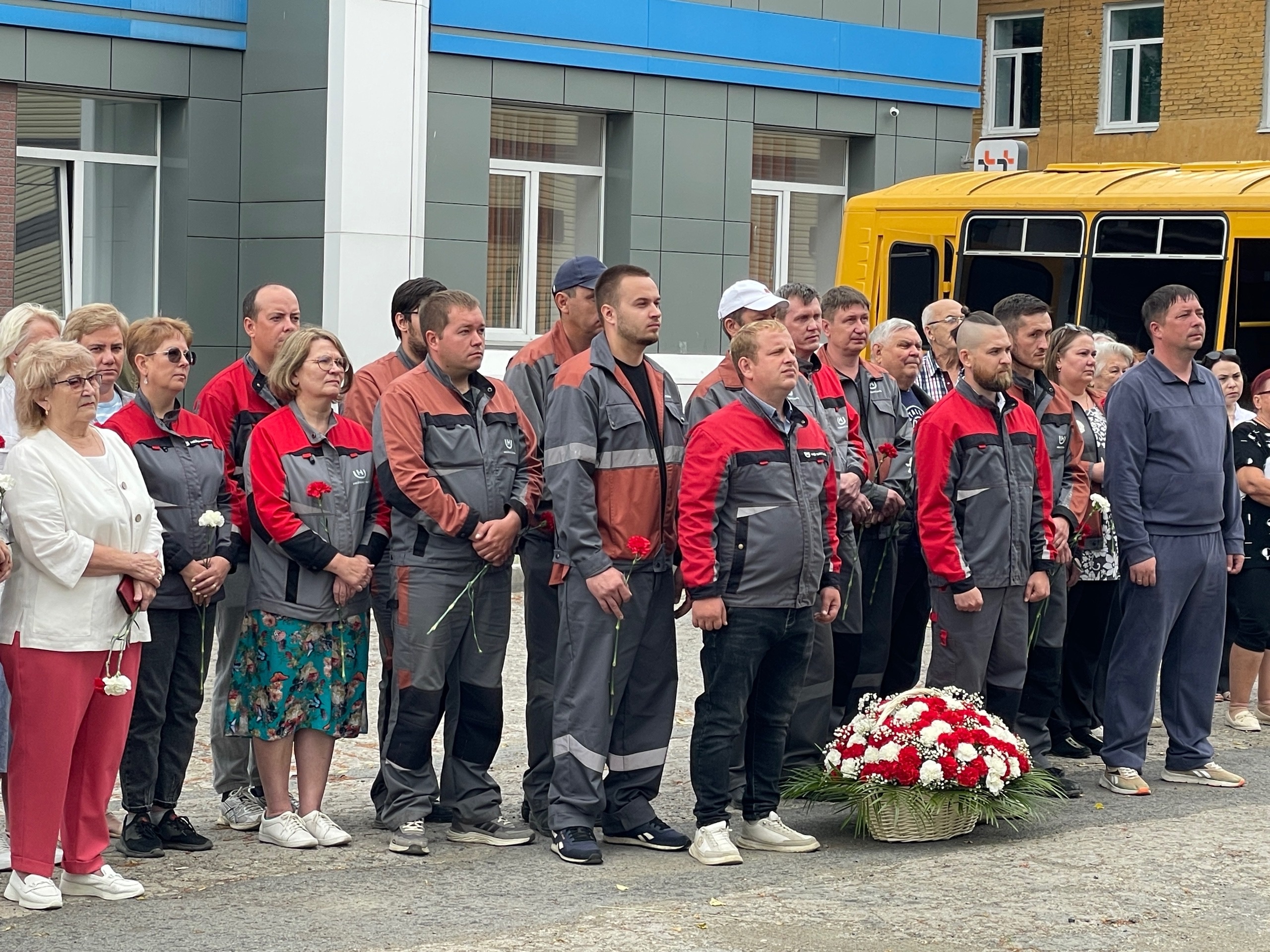 Минута молчания в знак глубокого уважения, возложение памятных цветов и слова благодарности металлургам, погибшим в боях в годы Великой Отечественной войны.